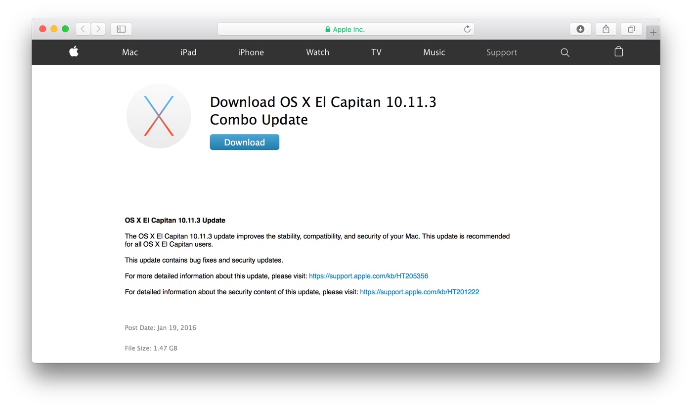 - Download OS X El Capitan 10.11.3 Combo Update (1.47GB) – Apple サポート