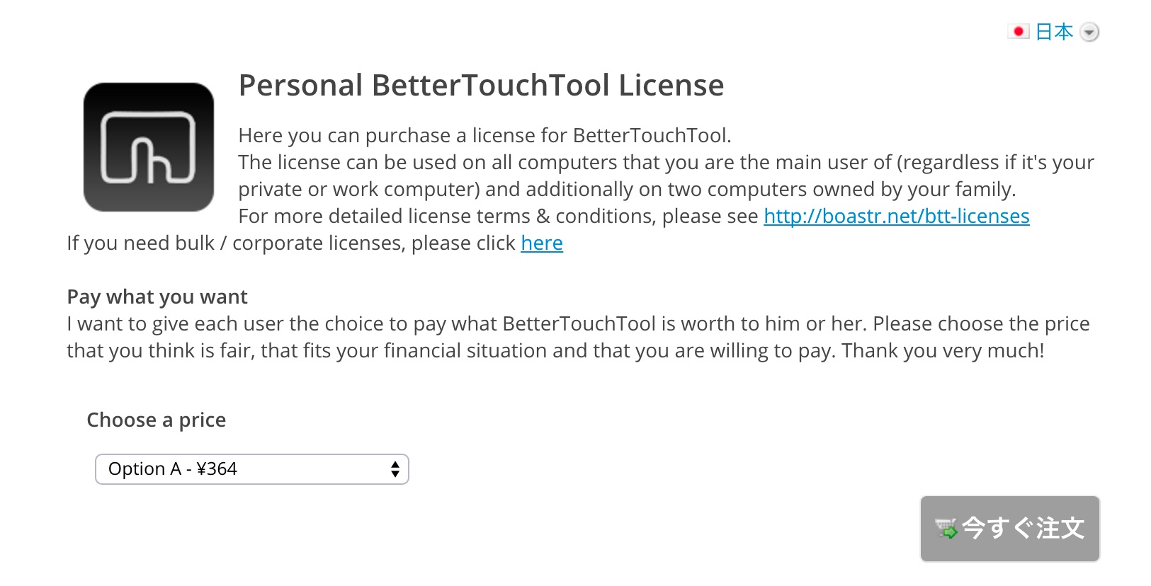 Macの入力デバイスの機能を拡張できる「BetterTouchTool(以下BTT)」が有料化に伴い、BTTのライセンスを販売するストアを公開したと発表しています。