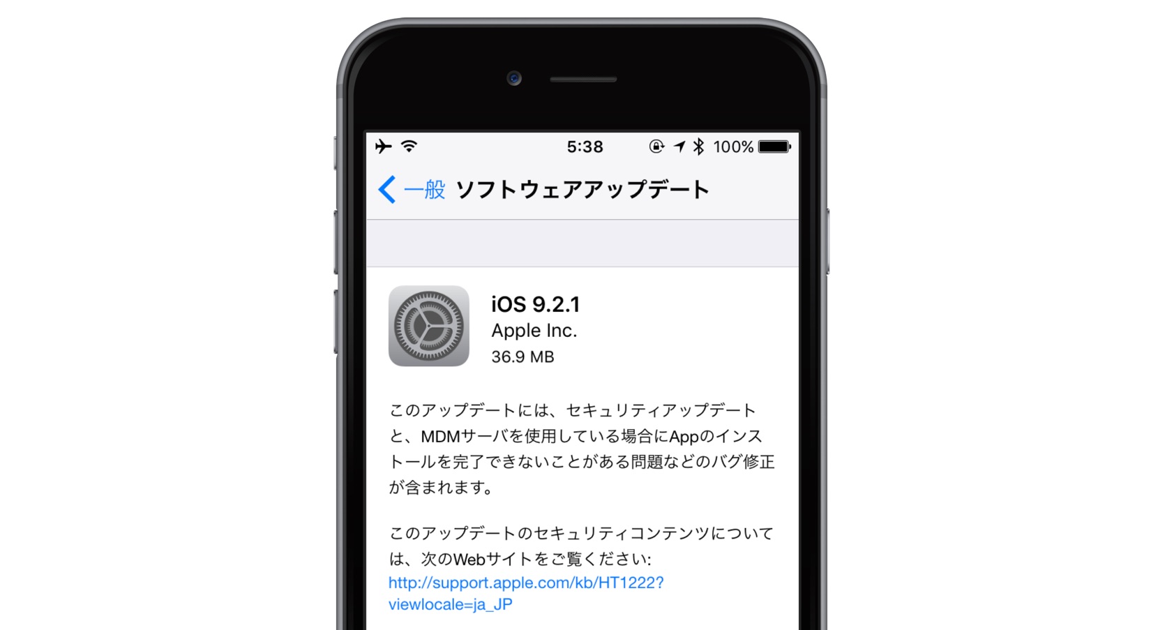 このアップデートには、セキュリティアップデートと、MDMサーバを使用している場合にAppのインストールを完了できないことがある問題などのバグ修正が含まれます。