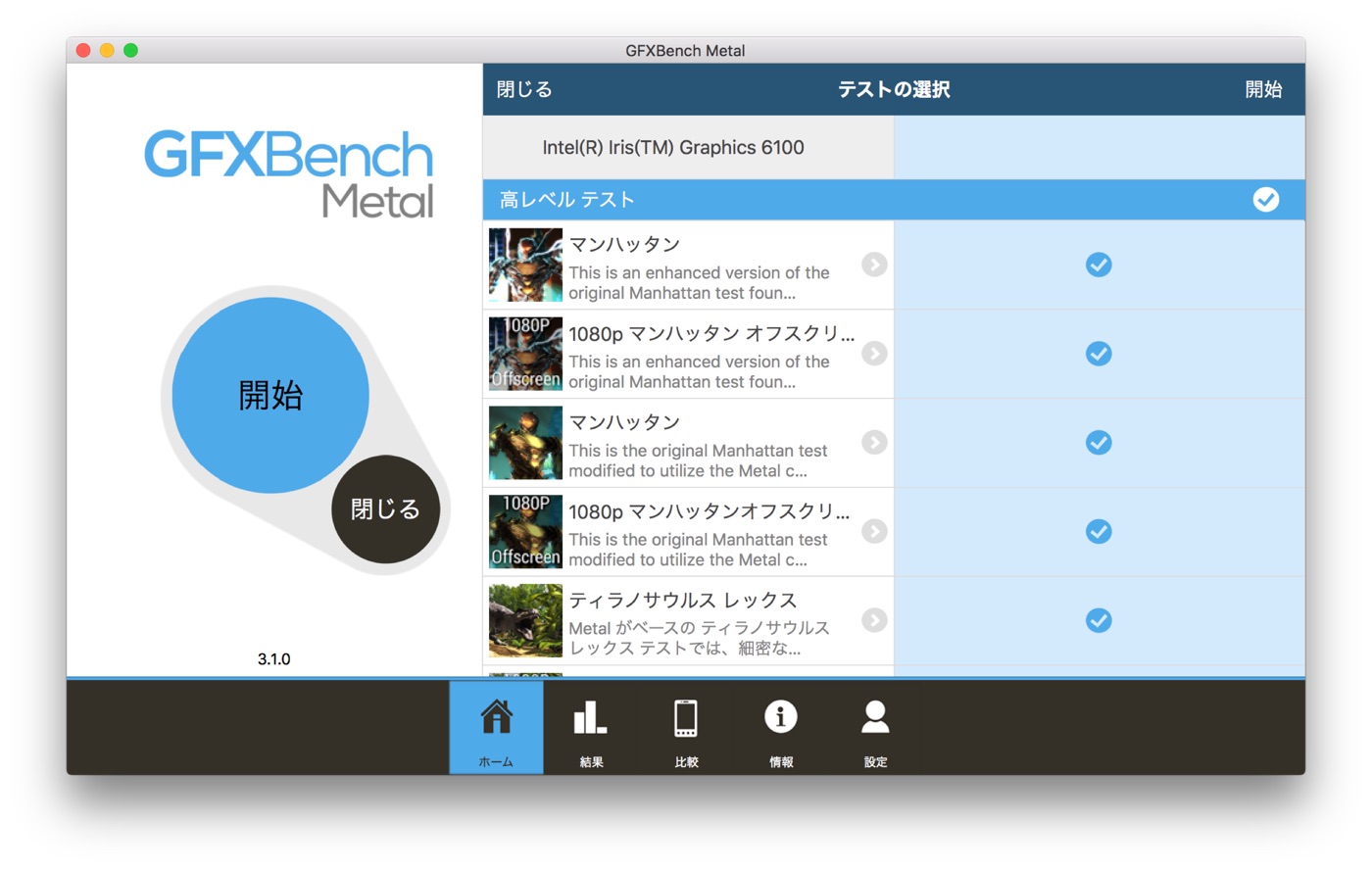 *Metal for Macに対応したMacは2012年以降に発売されたMacで、GFXBench Metalのシステム要件もOS X 10.11 El Capitan以上Macとなっているので注意して下さい。