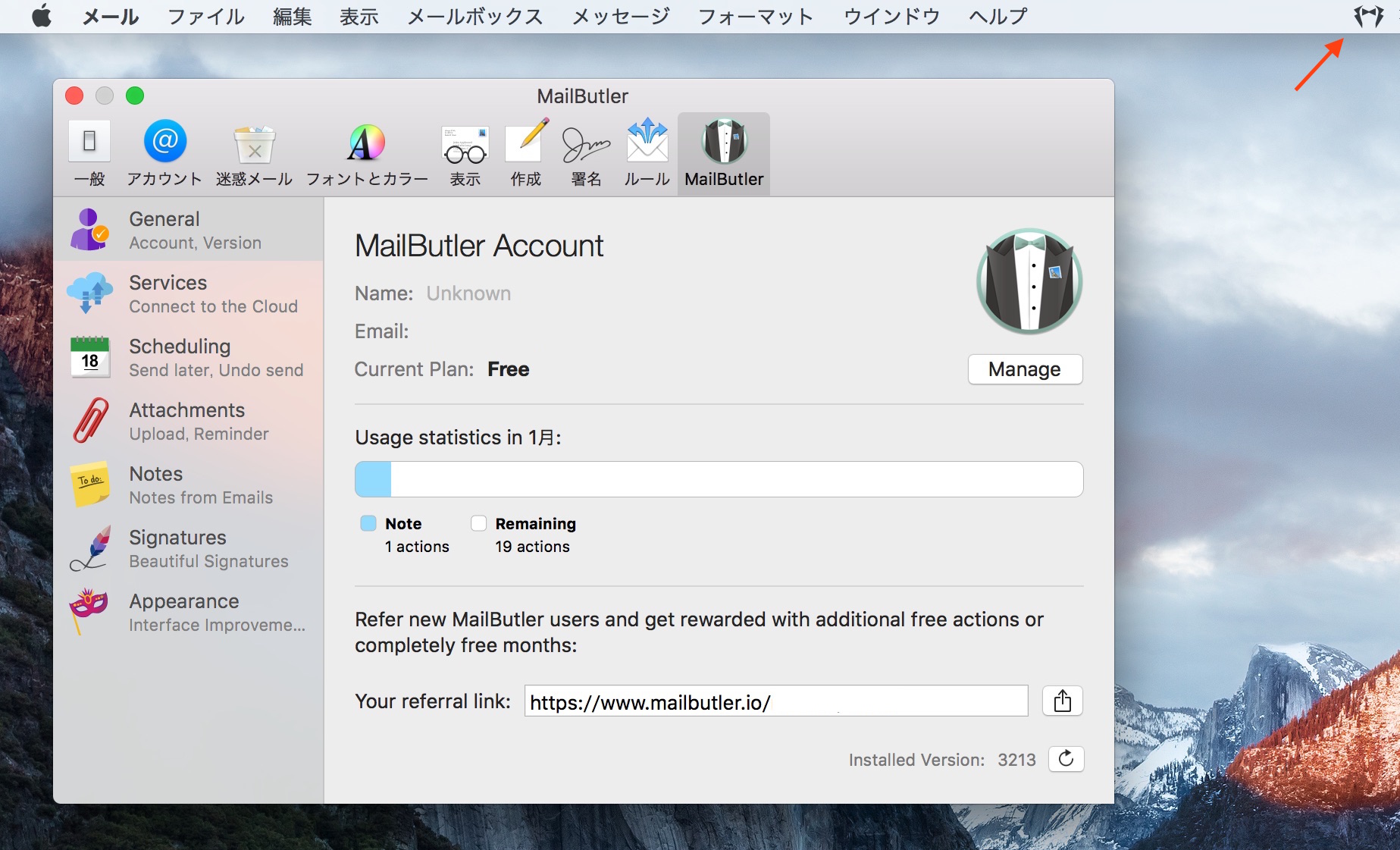 設定はメールアプリの環境設定に追加され(またはメニューバーアイコンから)、この他FacebookやGoogle+などと連携して自動的にアバターを取得してくれる機能や、添付ファイルの付け忘れ防止機能などが利用できます。