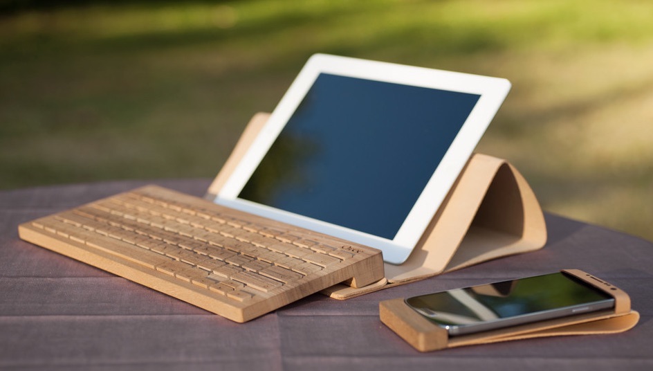 Portable wireless keyboard handcrafted from single piece of solid premium wood.