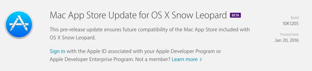 You can verify your receipt validation code is compatible with the renewed certificate in the test and production environments. A pre-release version of the Mac App Store Update for OS X Snow Leopard beta is now available.