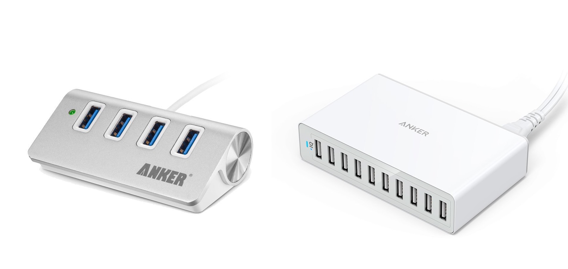 AmazonでAnkerのアルミ製4ポートUSBハブや、10ポートUSB急速充電器などがタイムセール中です。詳細は以下から。