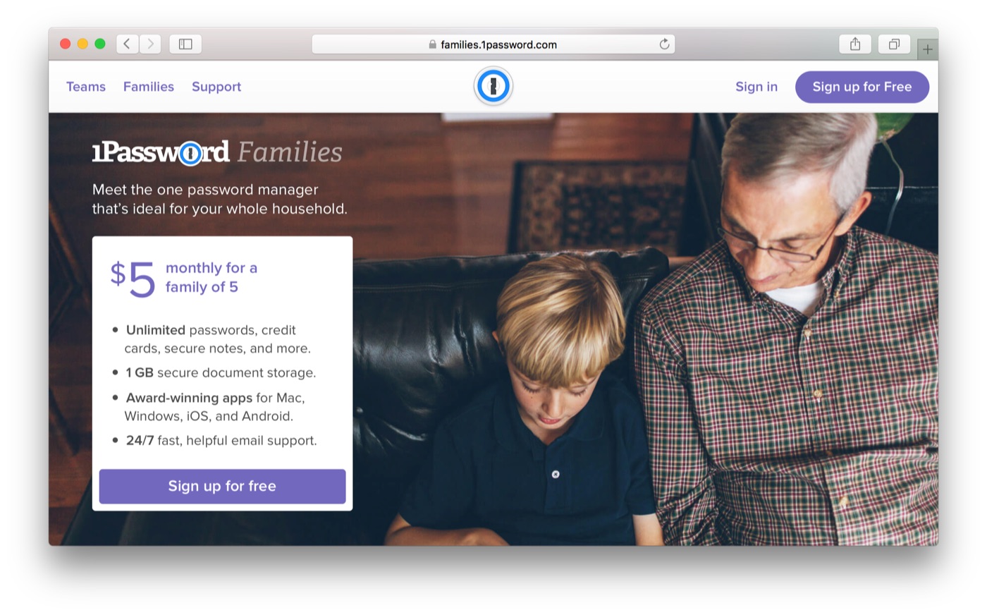 1Password for Families builds on our new Teams infrastructure to give you everything you need to protect your loved ones. And it’s only $5 a month for your family of 5.