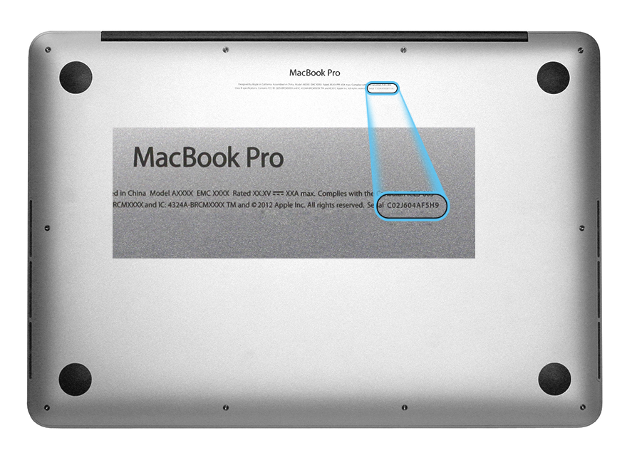 シリアル番号の確認法は、OS Xの[このMacについて]から確認する方法の他、Macが起動しない場合は本体ケース裏で確認できます。
