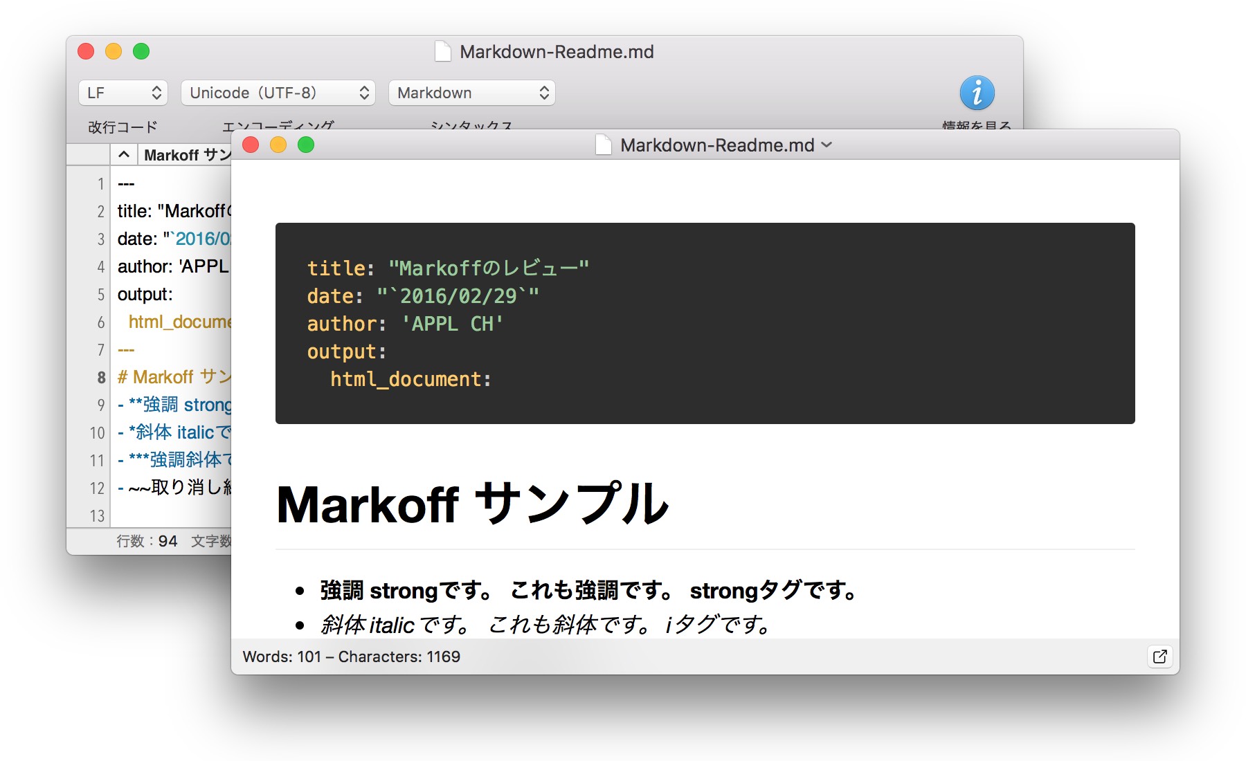 オートリフレッシュや外部エディタとの連携機能を搭載したMac用Markdownプレビューアプリ「Markoff」がリリースされています。詳細は以下から。