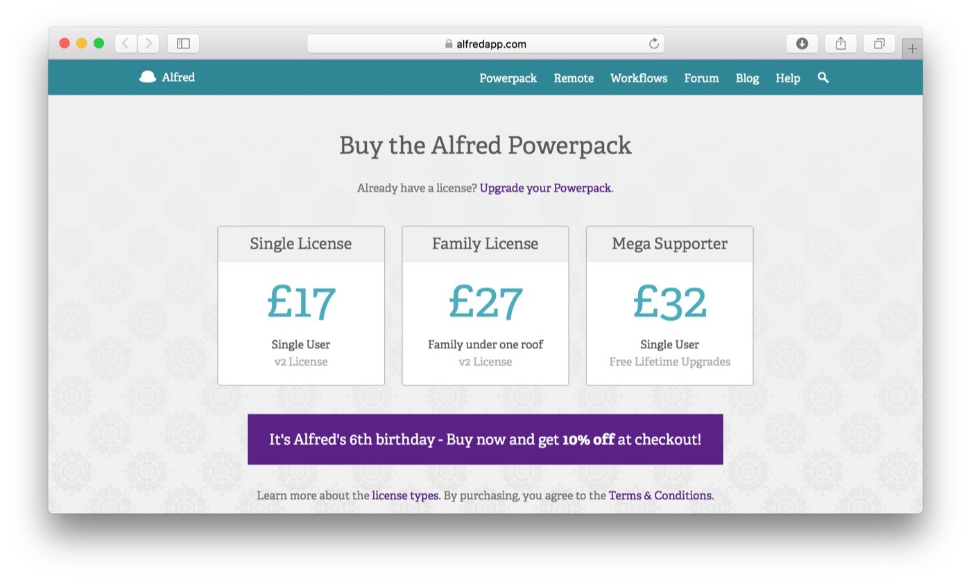 Today is Alfred’s birthday, and this week, we’re offering you a 10% discount on the Powerpack! We’ll be celebrating all week with giveaways and exciting news, so stay tuned.