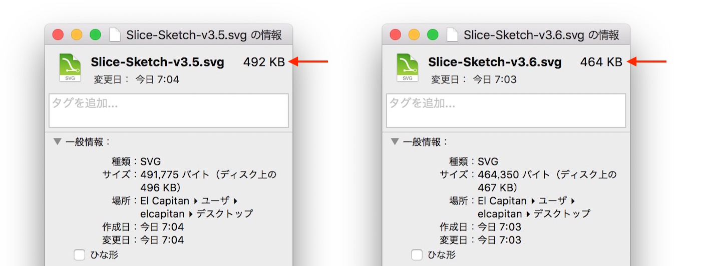 SVG機能は様々な改善が行われていますが、特にエクスポート機能では必要のないprefixes(ヘッダー)を整理し廃止したことにより、よりコンパクトなSVGファイルを書き出すことが可能になっています。