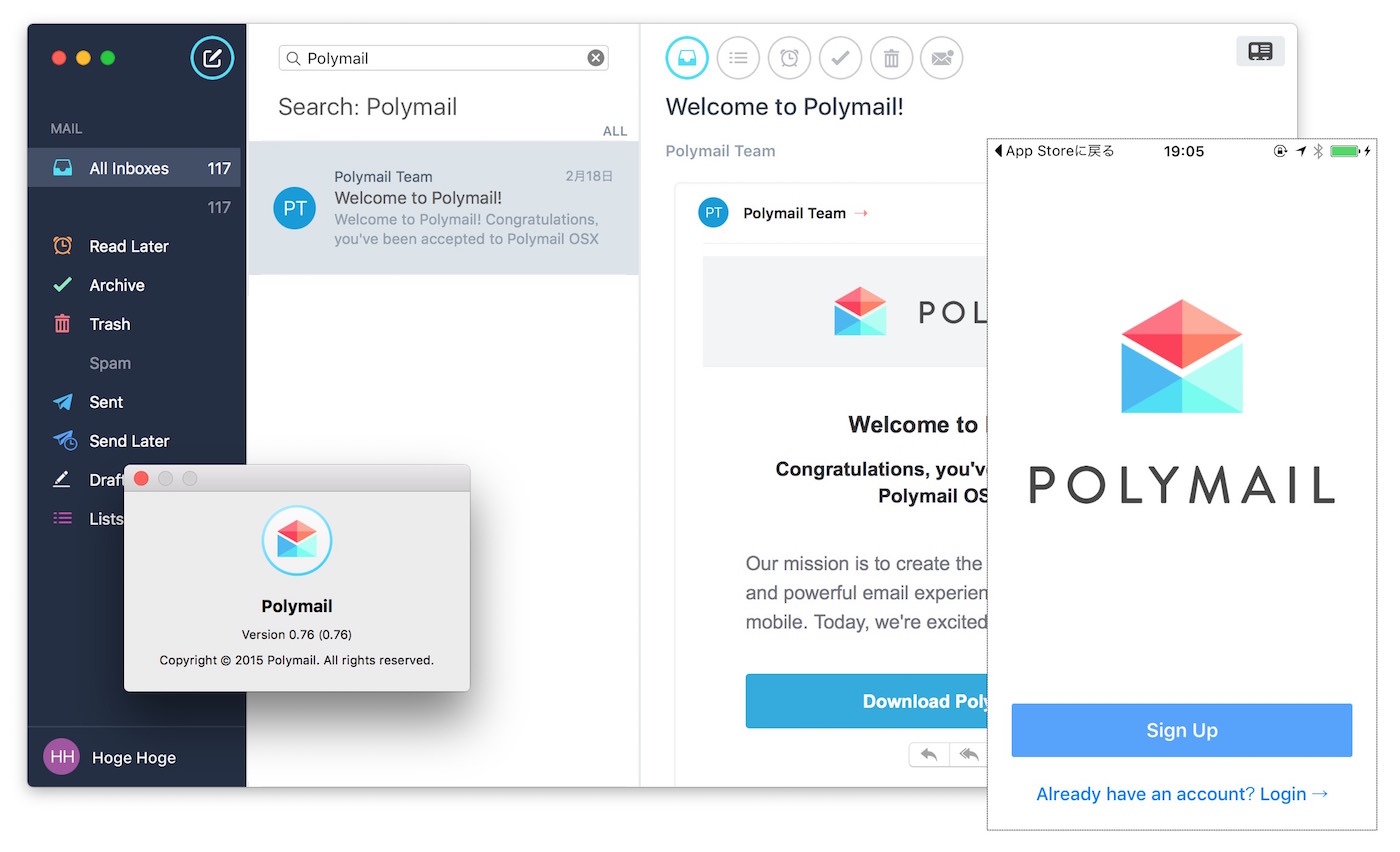 Polymailは昨年12月からBeta版が公開されたメールトラッキング機能やコンタクトプロフィール ウィンドウが利用可能なMac用のネイティブメールクライアントですが、このPolymailがBetaプラットフォームをiOSにも拡大すると発表しています。