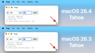macOS 26 Tahoe macOS 26.4 Tahoeではアプリケーションウィンドウのリサイズエリアが丸いコーナー形状に沿わない問題が修正。