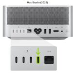 Mac Studio Apple、Mac Studio (2022)をDFUから復元させるためのThunderbolt 4(USB-C)ポートを紹介。