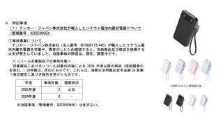 消費者庁、Anker Japanがリコールを行っているモバイルバッテリー「Anker Power Bank (10000mAh, 22.5W)」で火災に至る事故があったとして情報を公開。