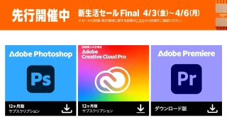 Adobe Adobe、新規購入者向けにCreative Cloud ProやPhotoshop、Illustrator、Premiere Proのサブスクリプションを最大50%OFFとする新生活応援セールを04月9日まで開催。 2026.03.31 Adobe