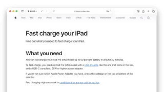 バッテリーを約30分で50%まで充電できる「iPad Pro (M5)」の高速充電はiPhoneと同じく低温/高温になりすぎると機能しない場合があるので注意を。