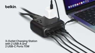 Belkin、3つのコンセントポートと最大70W出力の2つのUSB-A/-Cポートを備えた「Belkin 3口充電ステーション USBポート付き 70W」を発表。