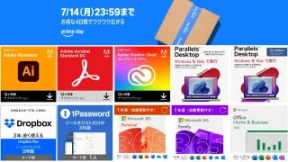 タイムセール Amazonプライムデーセールで、Adobe CCコンプリートの新規購入者対象キャンペーンやMicrosoft 365、Parallels Desktop、Dropbox Plusなどのサブスクリプションが特別価格で販売中。