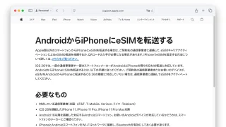 iOS26 Apple、iOS 26と一部の通信業者でサポートされる「AndroidからiPhoneにeSIMを転送する」方法を公開。