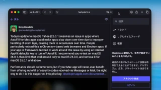 macOS 26 Tahoe macOS 26 Tahoeでシステム全体の遅延やバッテリー消費を引き起こす問題のあるElectronアプリがMacにインストールされているかを簡単に確認できるAppleScriptアプレット「Tahoe Electron Detector」が公開。