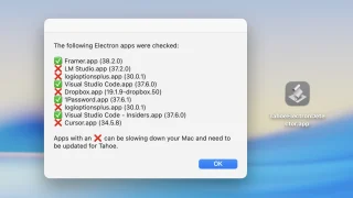 macOS 26 Tahoe macOS 26 Tahoeでシステム全体の遅延やバッテリー消費を引き起こす問題のあるElectronアプリがMacにインストールされているかを簡単に確認できるAppleScriptアプレット「Tahoe Electron Detector」が公開。