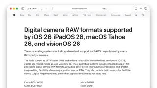 macOS 26 Tahoe Apple、最新のmacOS 26 TahoeやiOS/iPadOS 26、visionOS 26で「FUJIFILM X-E5」や「Leica TL」などのデジタルカメラのRAWフォーマットをネイティブサポート。