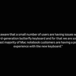 MacBook Air MacBook Pro (2019)や交換用の第3世代バタフライ・キーボードにはキーが入力されない/多重入力される問題を大幅に削減する新素材が採用されたキーボードが使われているもよう。