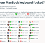 MacBook Pro MacBook Pro (2018)の第3世代バタフライ構造キーボードで問題が発生しているユーザーはAppleの予想よりだいぶ多い?