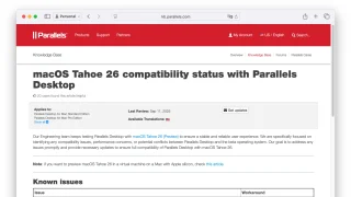 macOS 26 Tahoe Parallels、Intel MacでmacOS 26 VMがブラックスクリーンする不具合や外部ドライブがVMに接続できない不具合など最新のParallels Desktop 26とmacOS 26 Tahoe Betaで発生している不具合を公開。
