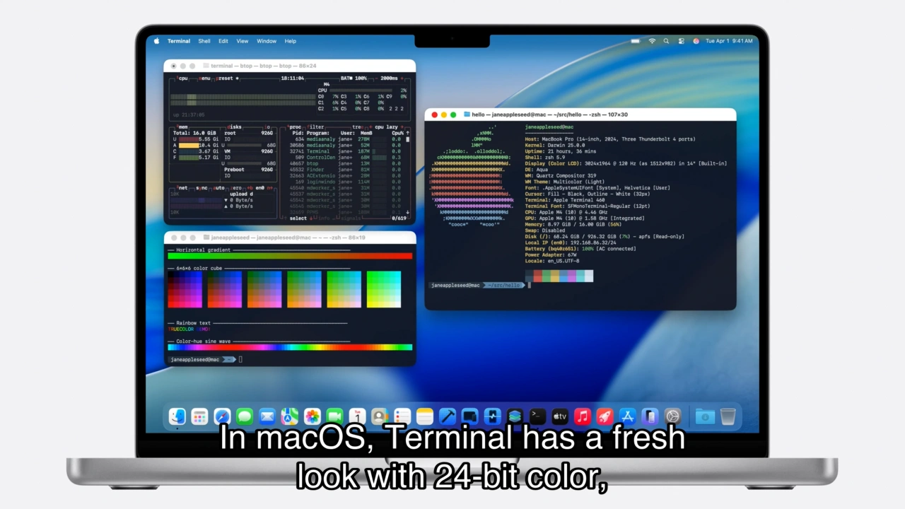 AppleはmacOS 26 Tahoeでターミナルアプリを刷新し、24-bitカラーやLiquid Glassデザインにインスパイアされた新しいテーマ、Powerlineフォントがサポートされます。